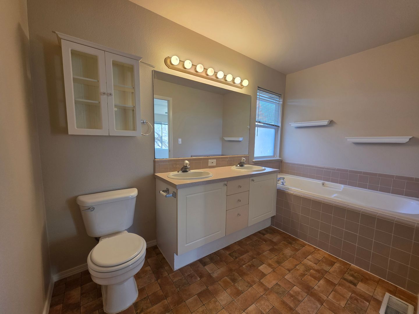 The spacious primary suite offers dual vanities, a separate soaking tub and shower, and a walk-in closet. All bedrooms enjoy great views and generous natural light throughout the day. The home has been thoughtfully updated with brand-new carpet, refinished hardwood floors, a full interior repaint, and the AC unit was just replaced this past summer.